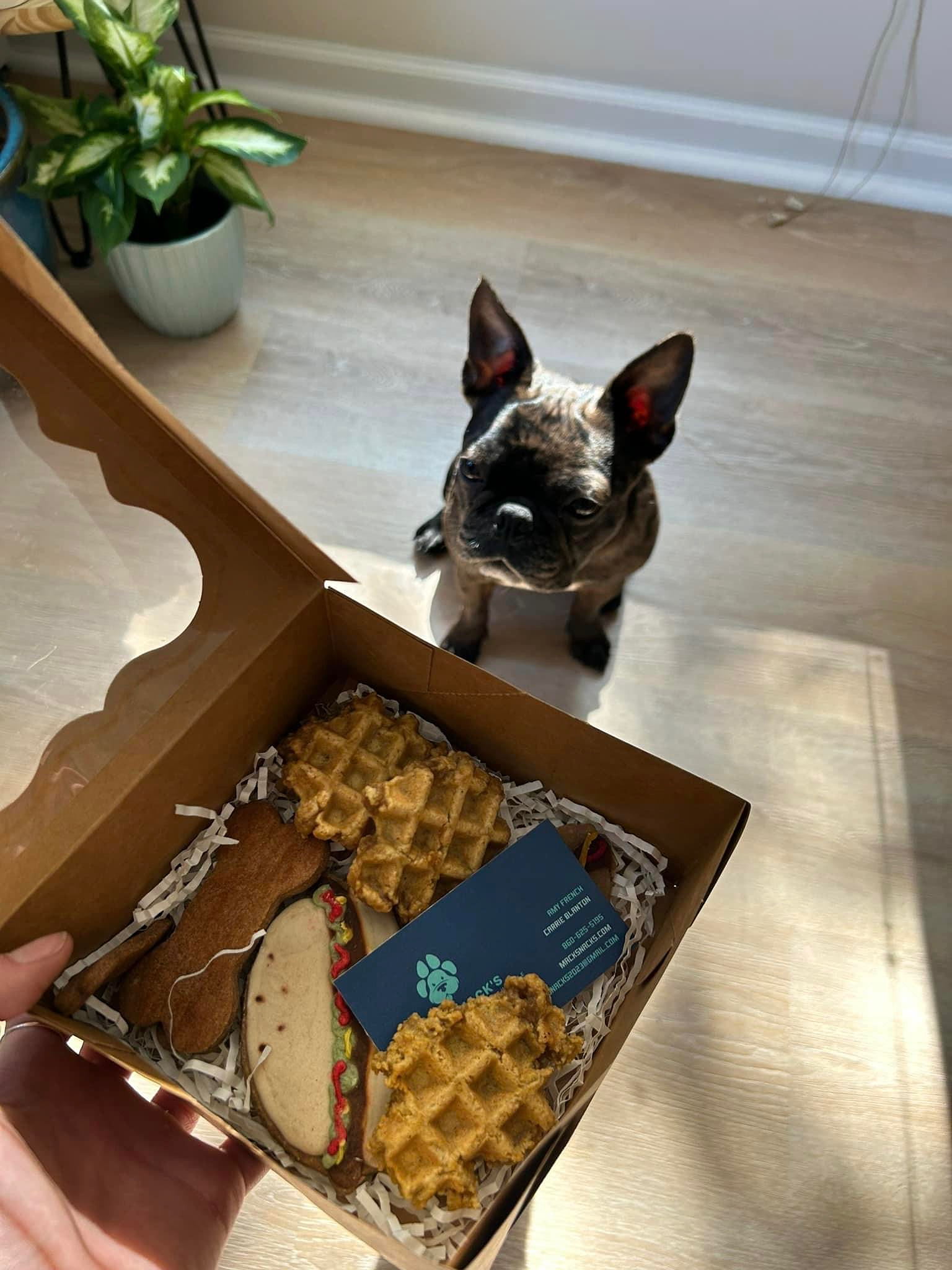 At Mack Snacks Inc. our mission is to serve pups, people, and a purpose. Our "purpose" is to provide meaningful employment and social opportunities for our "people"- individuals with special needs - while producing high-quality homemade dog treats and other products for our "pups"
