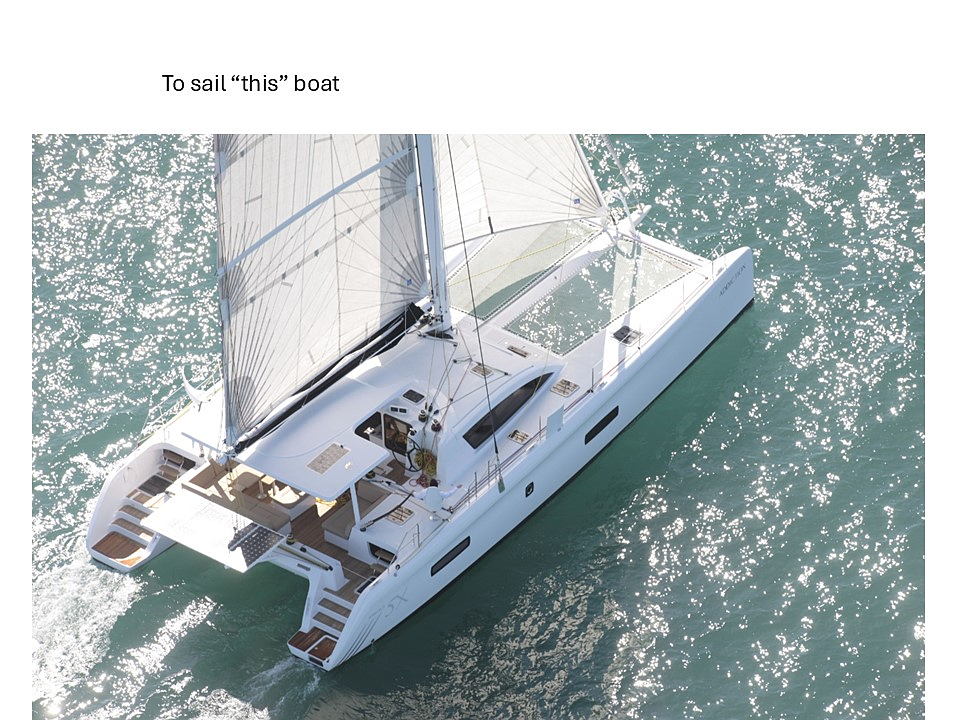 Do all this at no expense to the Crews: All expenses paid except for what the Crew does ashore at marina ports of call.