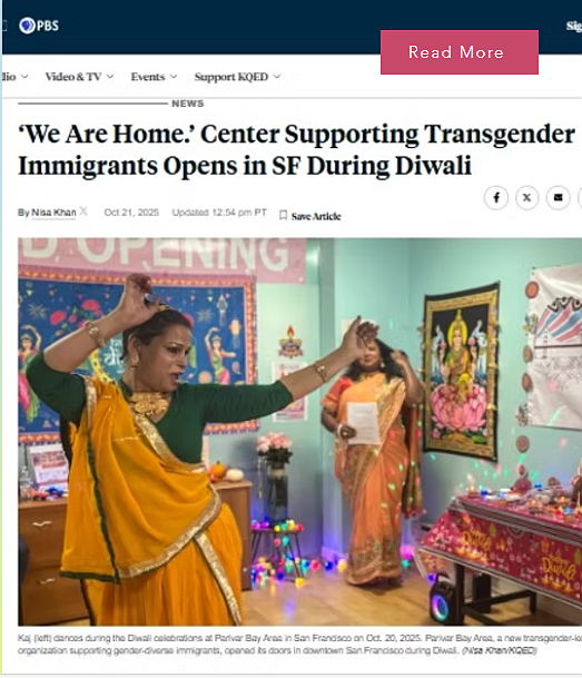 Parivar Bay Area is the USA's first & only Kinnar Hijrah led and empowering organization centering Indian South Asian and Global South transgender, gender-diverse, and intersex (TGNCI) immigrants and asylees, particularly those culturally rooted gender-expansive identities since 2018. Based in San Francisco with global mindset, we are rooted in Indian heritage, Trans leadership, and immigrant justice, we advance social, economic, and legal equity through advocacy, arts, direct support, and leadership development. We reclaim spaces beyond cisnormativity, confront systemic barriers, and build bold, affirming pathways where our communities thrive locally and globally grounded in dignity, belonging, and pride