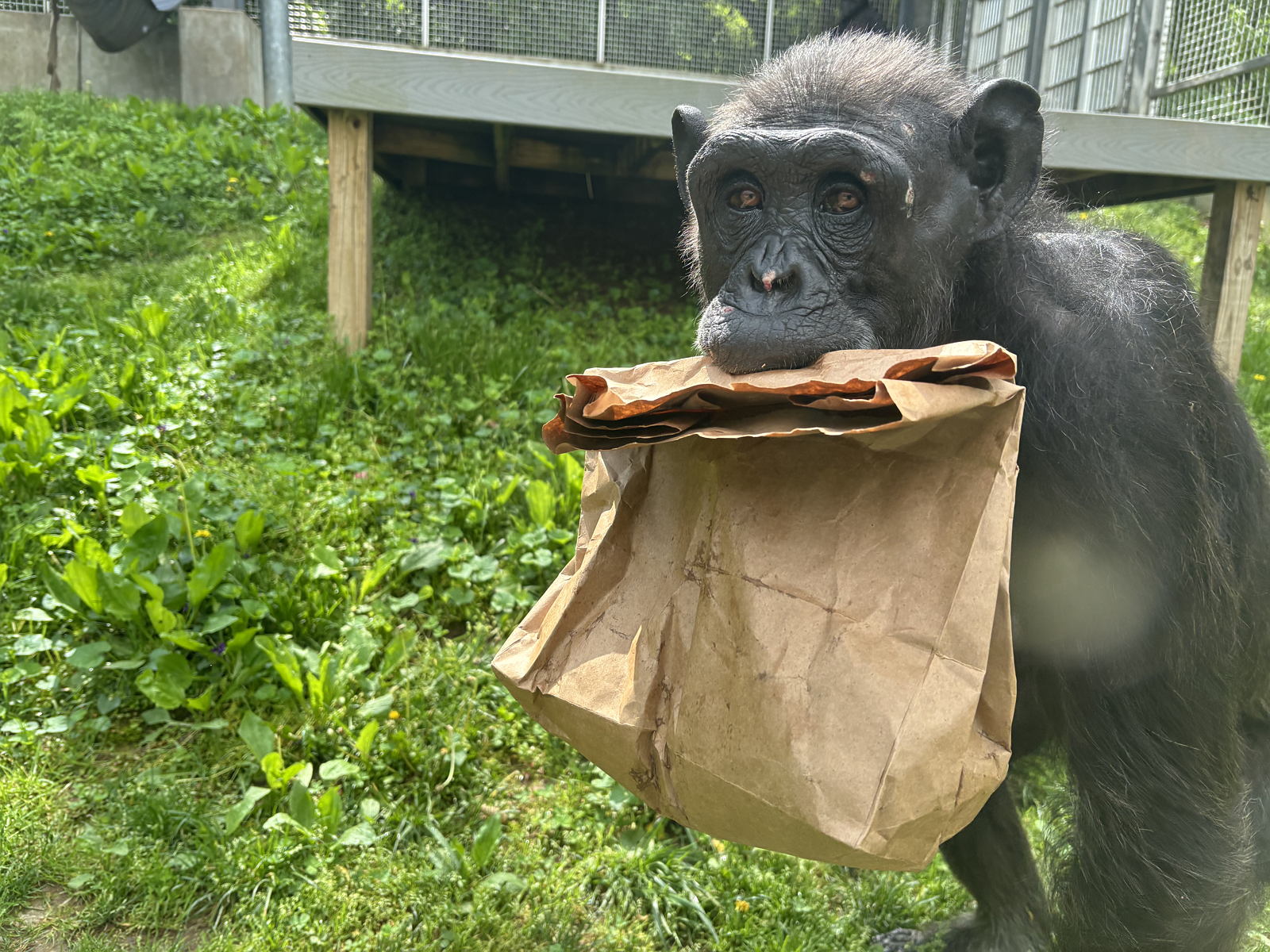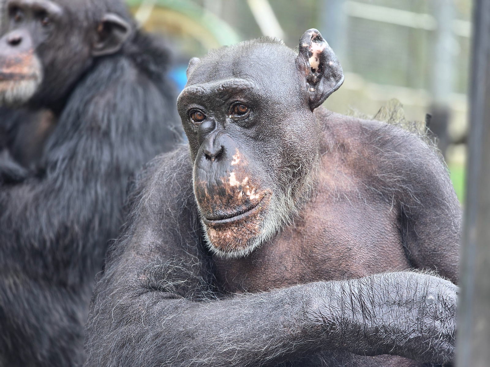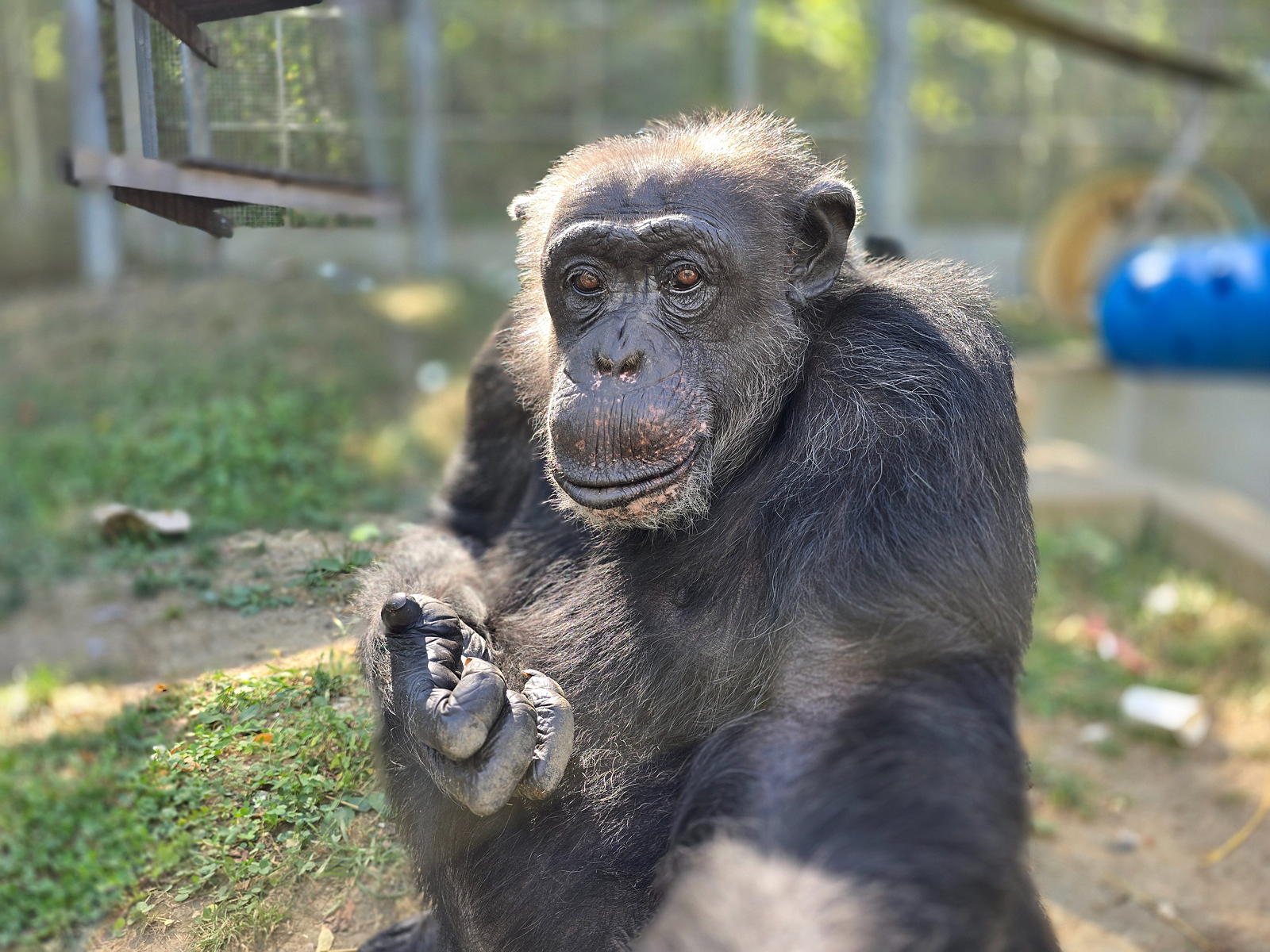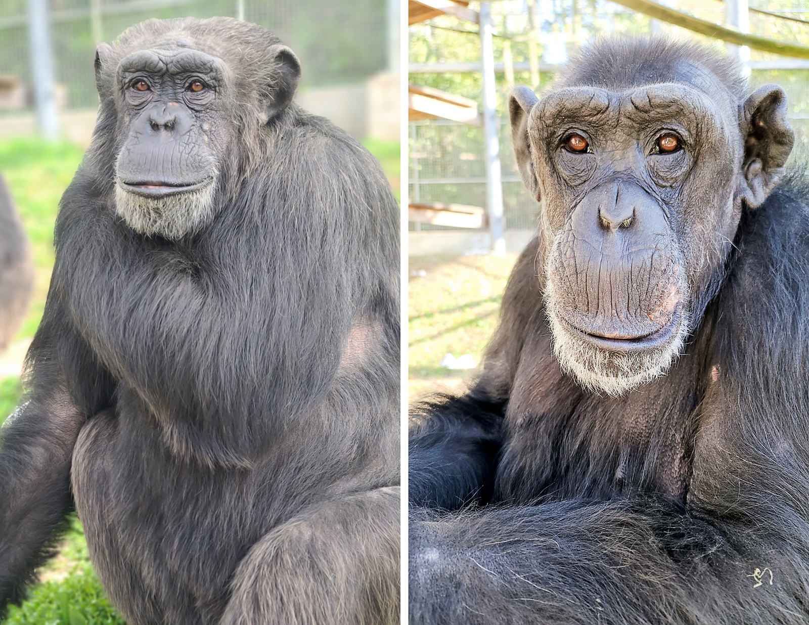 Zulu chimpanzee, 55, is our oldest resident. Zulu relies on medication to alleviate arthritis and joint pain, keep her blood pressure in a safe range, and control the