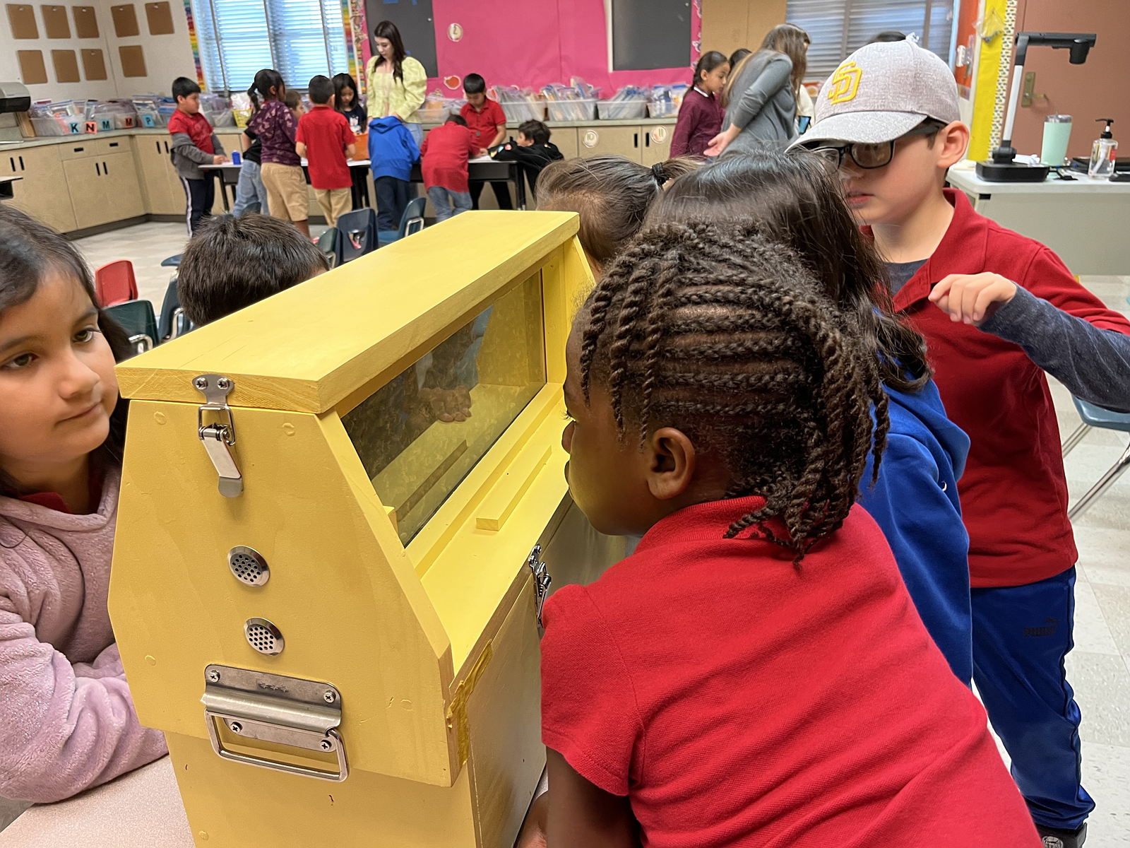 Our farm is designed to provide "reverse field-trips" where we bring the critters into the classroom. It is actually much easier to get 5,000 bees in a box than 24 children onto a bus, especially when you take into account the cost, chaperones, transportation, loss of instructional time, and permission slips required for a traditional field trip. This model allows us to provide more equitable access to formative, hands-on experiences.