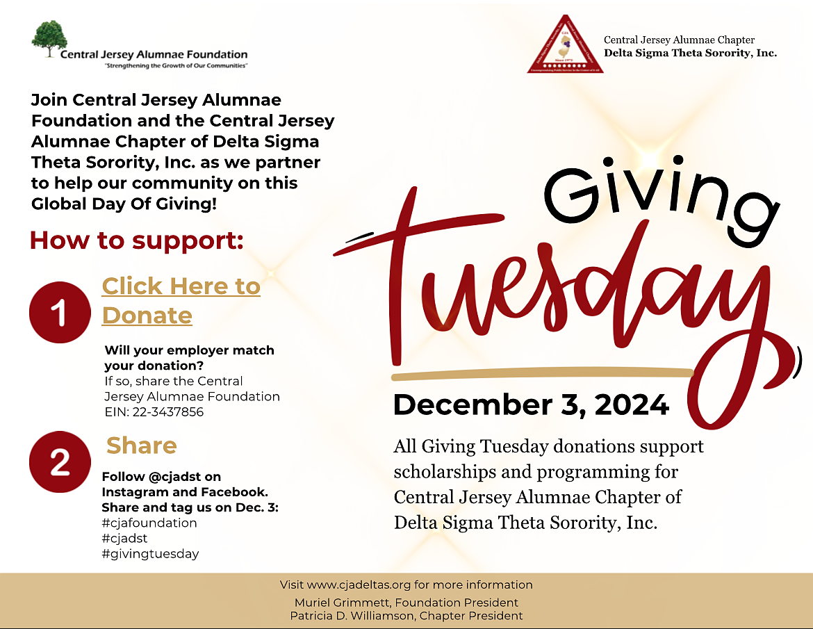 The Central Jersey Alumnae Foundation (CJAF), is seeking your support for our upcoming Giving Tuesday Campaign on Tuesday, December 3, 2024.