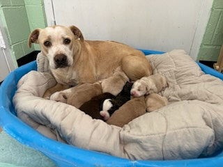 Left in a scary, small, rural shelter with her one-week pups, Henrietta has been terrified. The sounds, smells and feel of shelter made her shake in fear as she huddled around her newborn pups trying to keep them warm and safe.