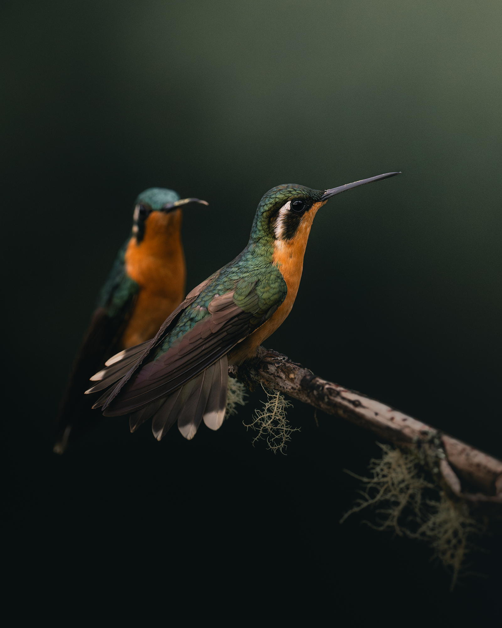 Inspiration: Hice la visita a un centro de rescate donde se encontraban estas lapas y estaban muy juntas, la imagen me cautivó profundamente debido a sus colores y el contraste con la vegetación oscura del fondo