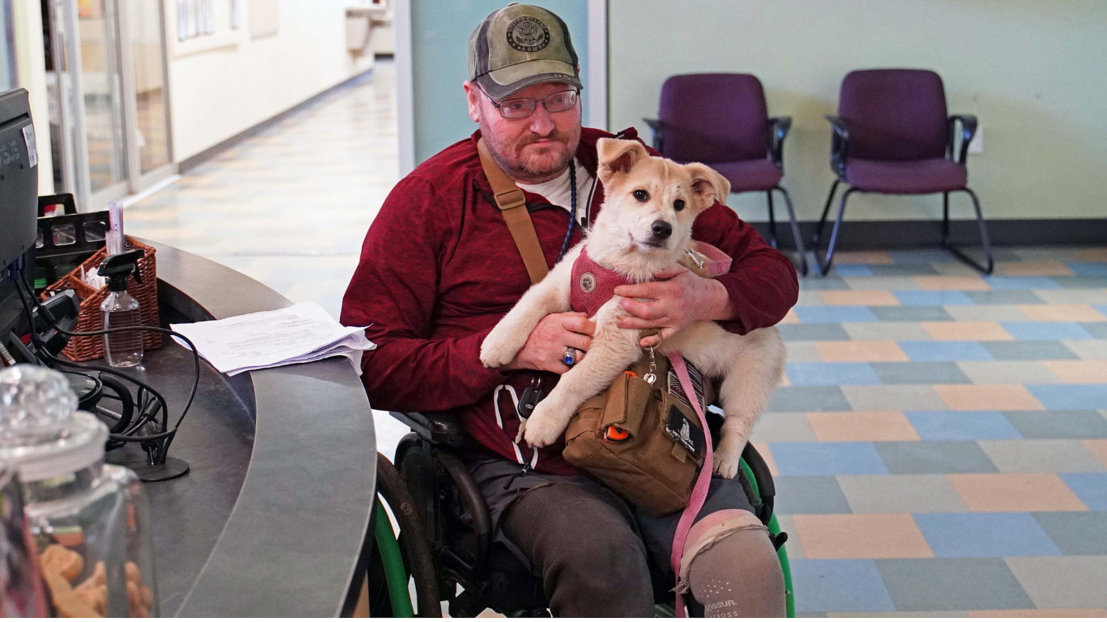 A former police officer and retired National Guardsman, Lev recently suffered a devastating fall that left him with a broken hip and in need of intensive medical care and rehabilitation. In a single moment, everything changed. Suddenly, he could no longer care for the four dogs he lovingly calls family: Willow, a 12-week-old puppy; Luna, age 6; Christy, age 10; and Sampson, age 5.